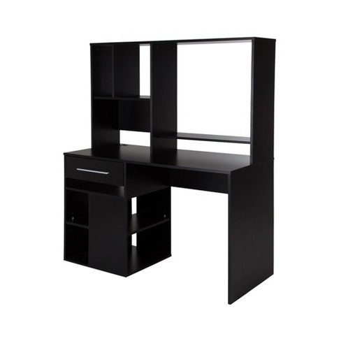 The espresso finish computer desk comes with plenty of surface space for your laptop books and other school supplies and features three open shelves for housing other computer accessories and knickknacks in a sleek and systematic manner.
