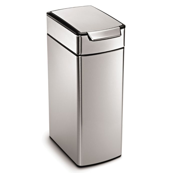The first was simplehuman countertop trash can brushed stainless steel 1 5 l 0 40 gal and i found this to be far too small for use as a bathroom trash can.