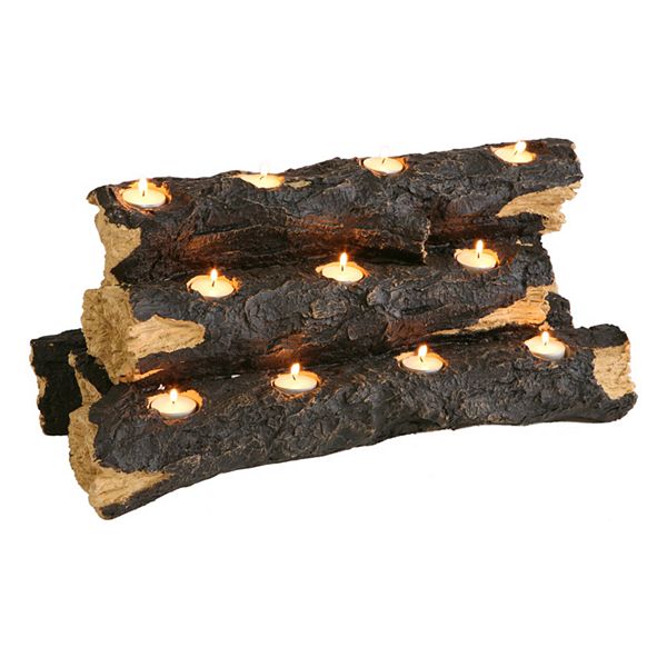 Resin Tealight Fireplace Log Candle Holder Holds 11 Tea Light Candles Rustic Home Garden Tea Light Candle Holders Accessories Ayianapatriathlon Com